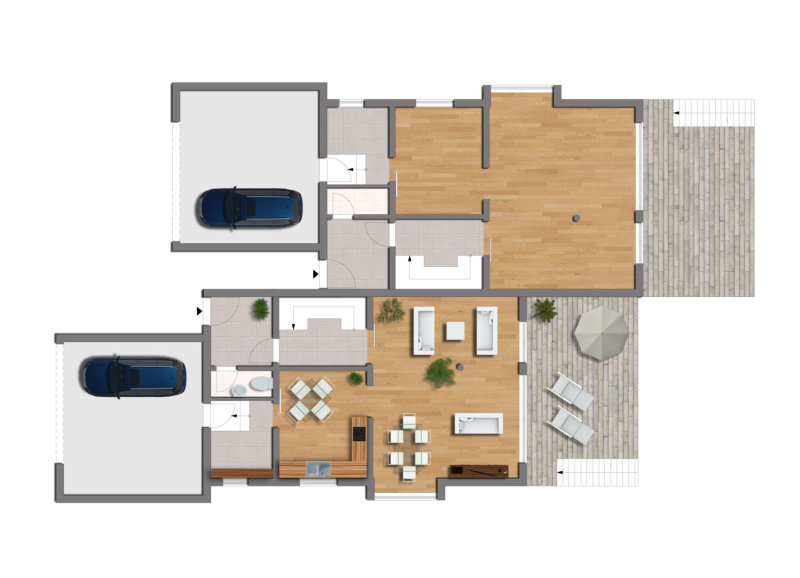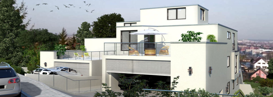 Das luxuriöse Architektenhaus “PALAZZO” teilt sich auf in zwei identische Einfamilienwohnhäuser - Haus A und Haus B -