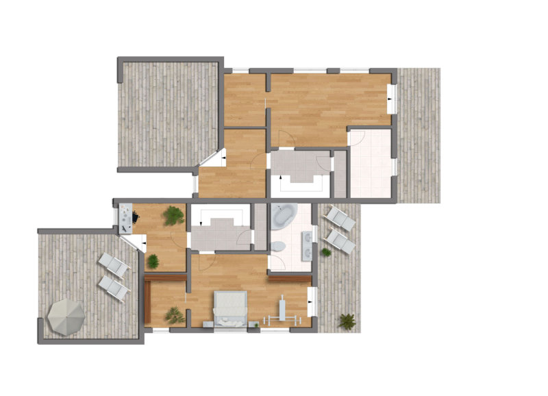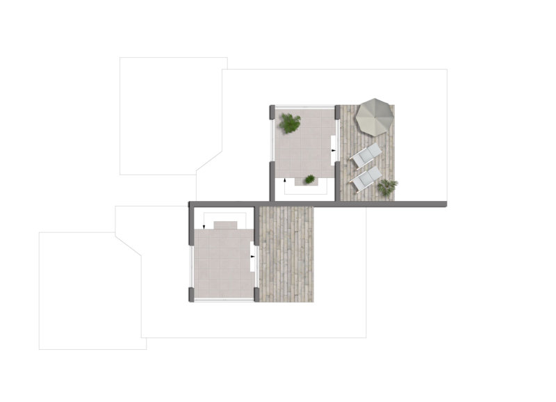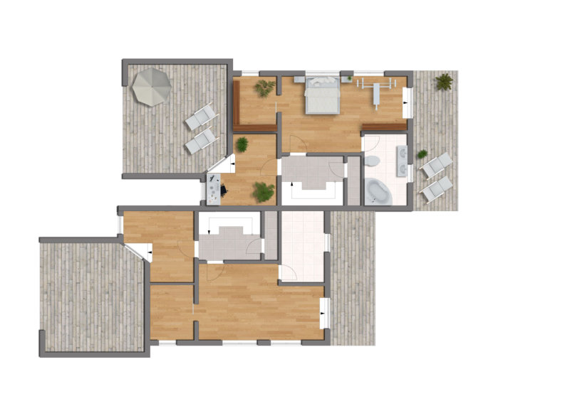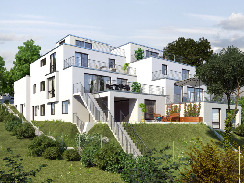 Die traumhafte Lage des Grundstückes machte es möglich, dass für jedes Haus 5 Terrassen geplant werden konnten.
